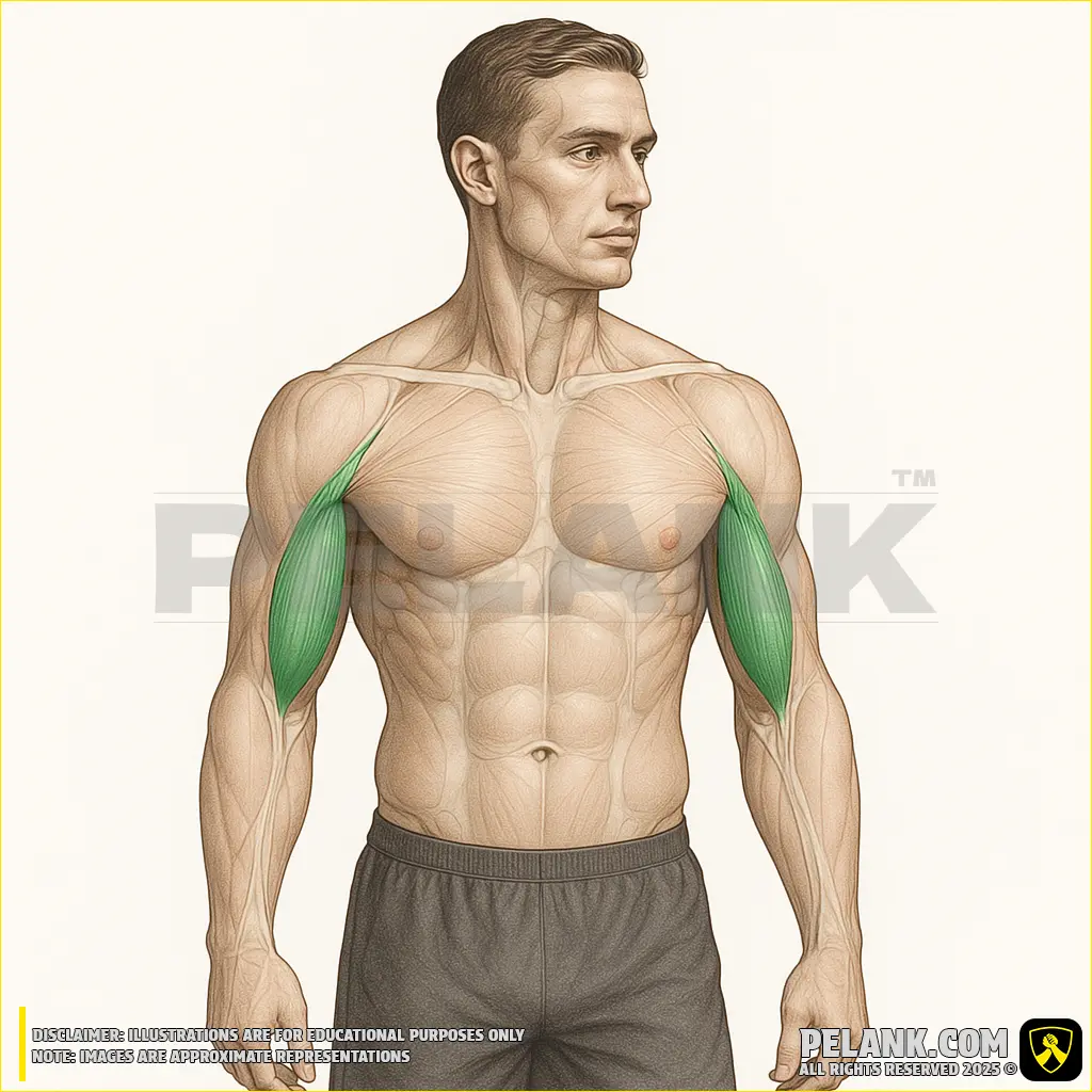 ✔ This muscle plays a key role in semi-rotational elbow movements and is more active in exercises such as hammer curls.