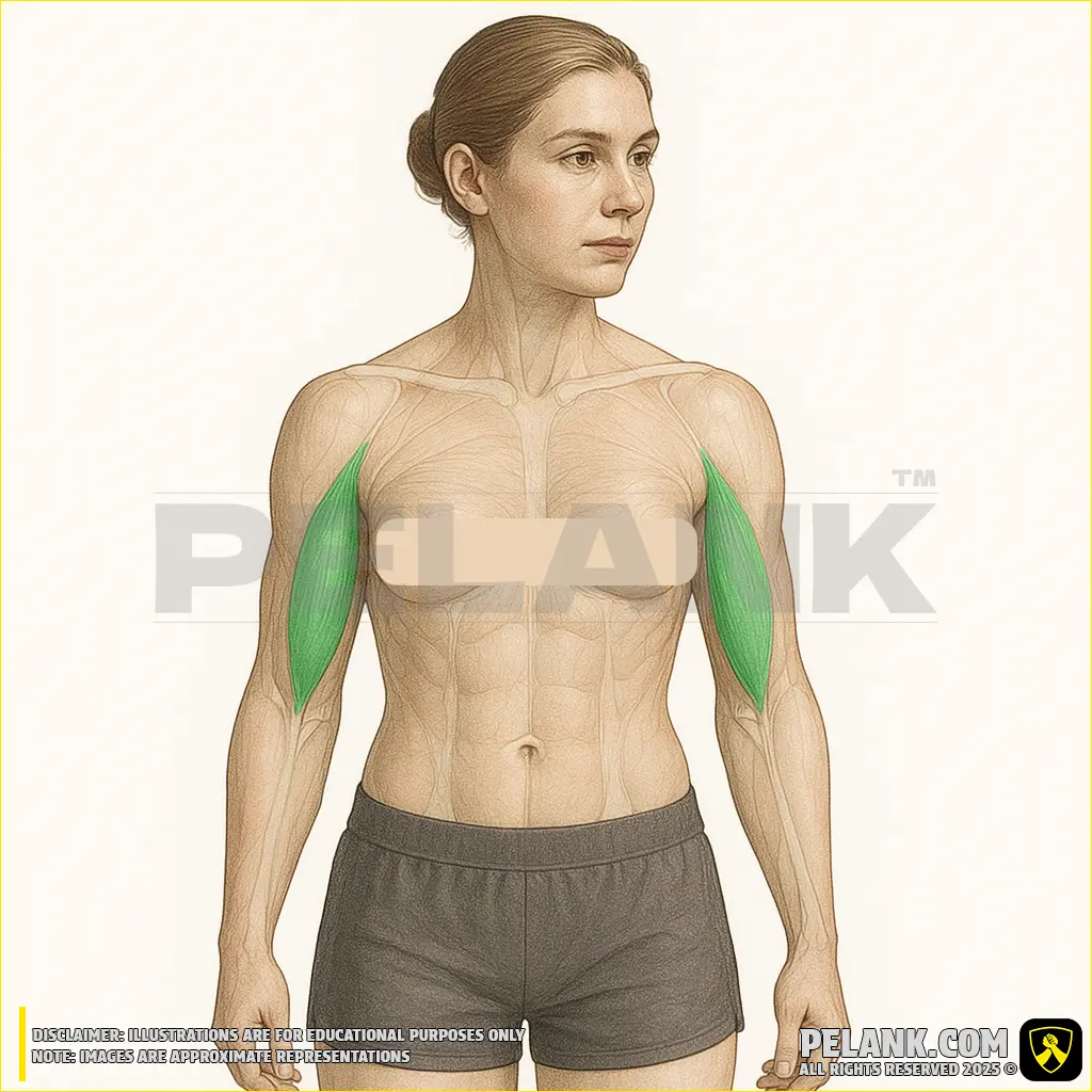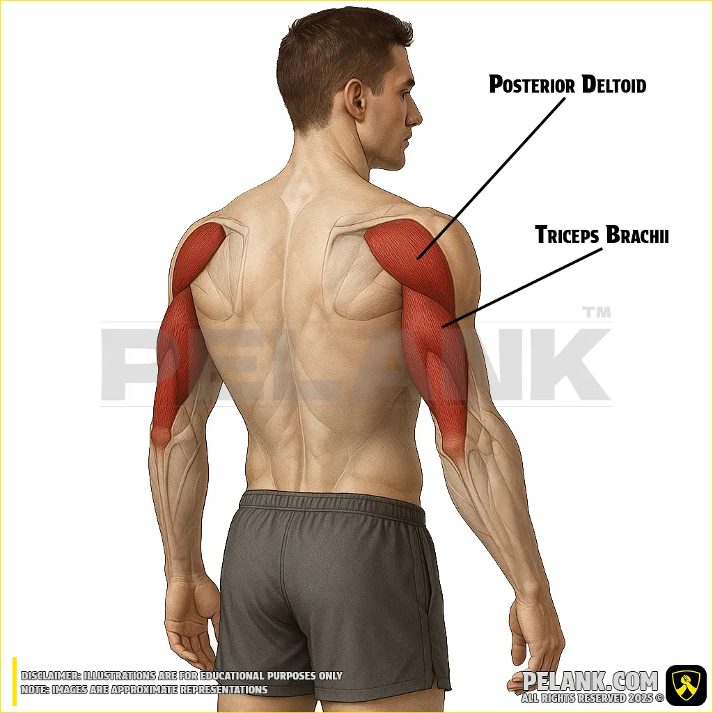 ✔ Assists in elbow extension during powerful movements such as bench press and dips.